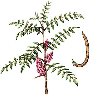 Arbuste gracieux à feuilles finement divisées en folioles, vert grisé. Il produit de minces épis de petites fleurs rose pourpré. Elles seront également utilisées sous réserve.